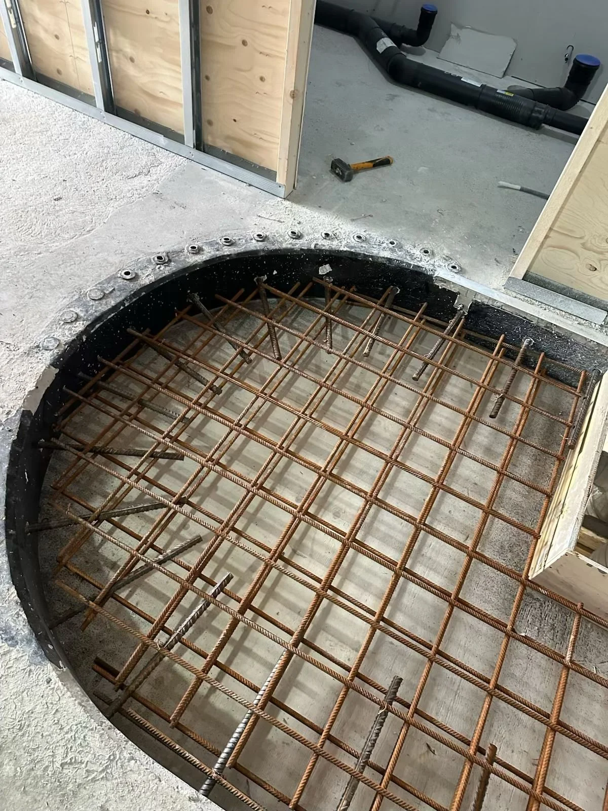 Håltagningar för installationer samt sågning och anpassning för en större hiss.